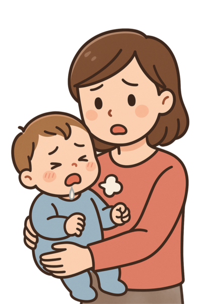 生後1〜2か月の乳児は、わずかな鼻水や咳だけでも、ごく軽く見えて無呼吸などを起こすことがあります。